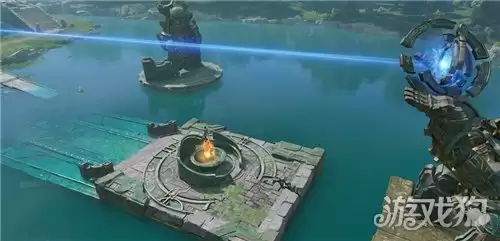 传送至“篱遁丘”渡石,向东北方向探索“巨兵头颅”探秘点。使用“燃烧果”清除镜面藤蔓,通过踩踏踏板调节三面镜子的反射角度,使光线最终射入墙洞即可显现碎片。此光学解谜需耐心微调镜面朝向。