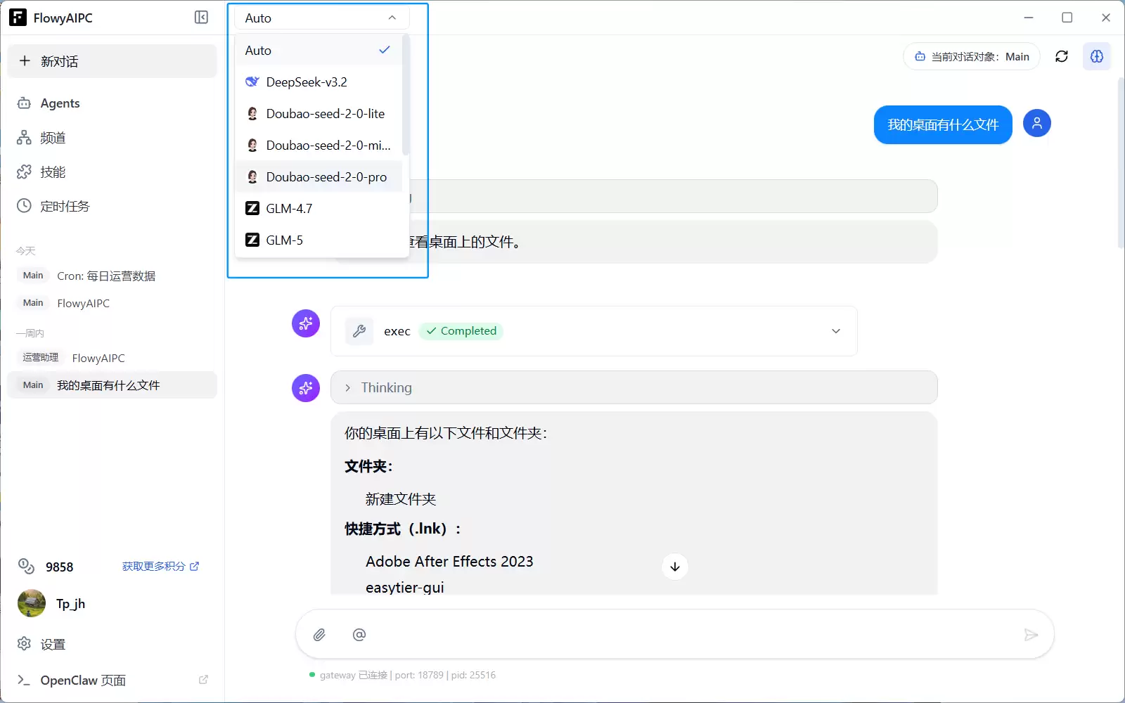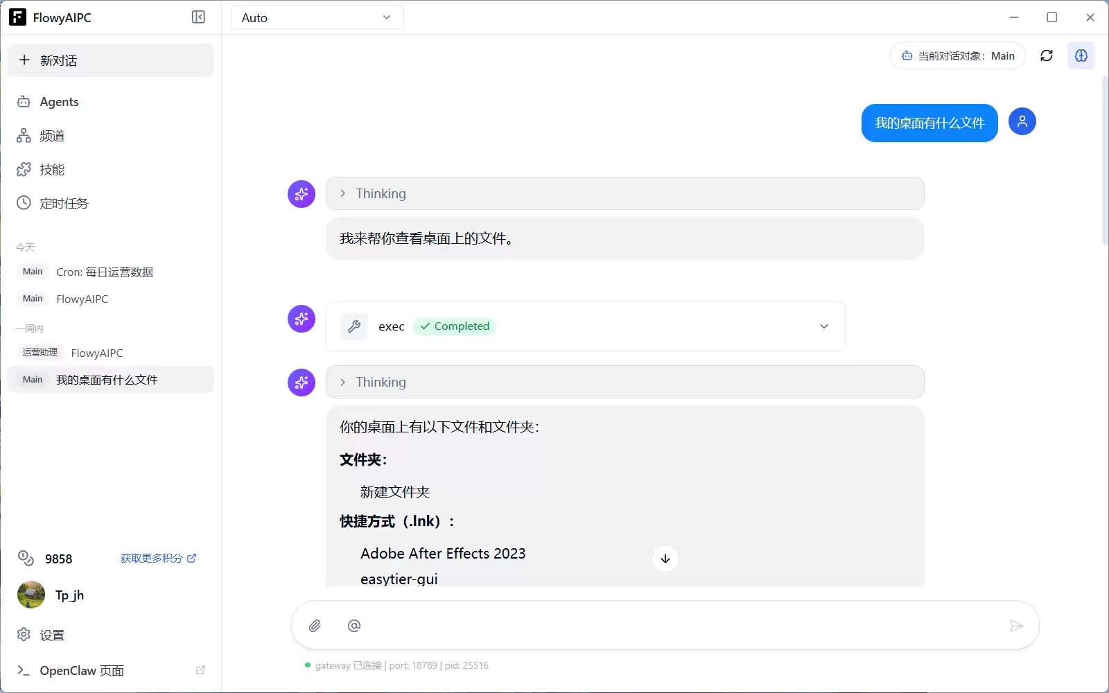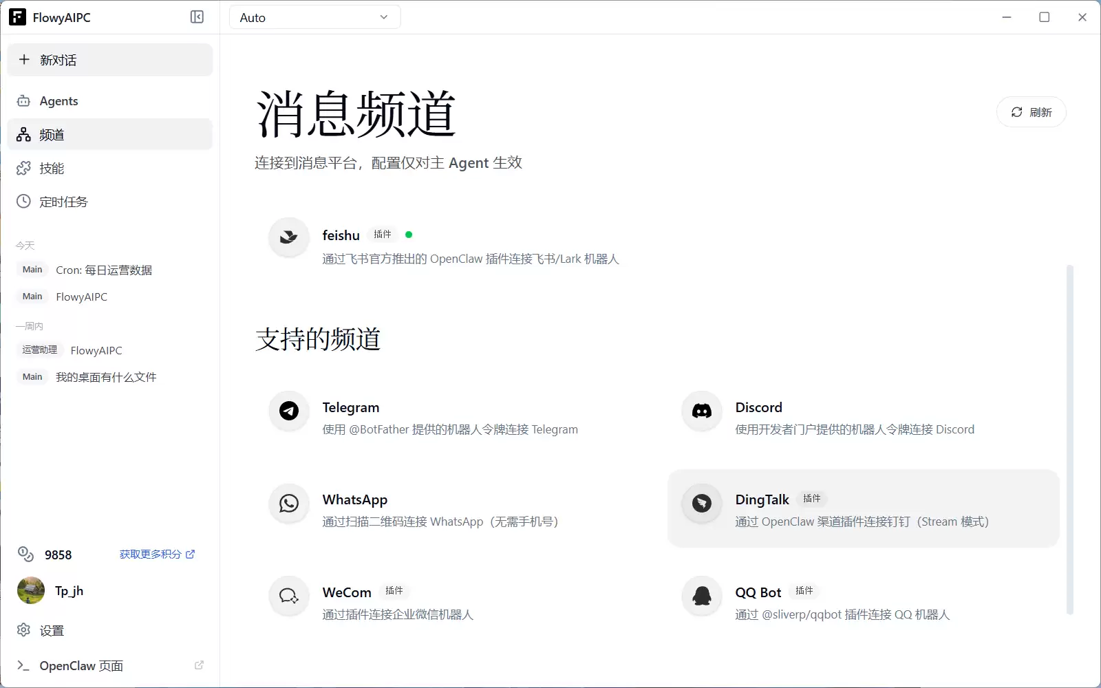 FlowyAIPC v5.0支持多频道接入功能,能够无缝对接主流办公通讯工具。