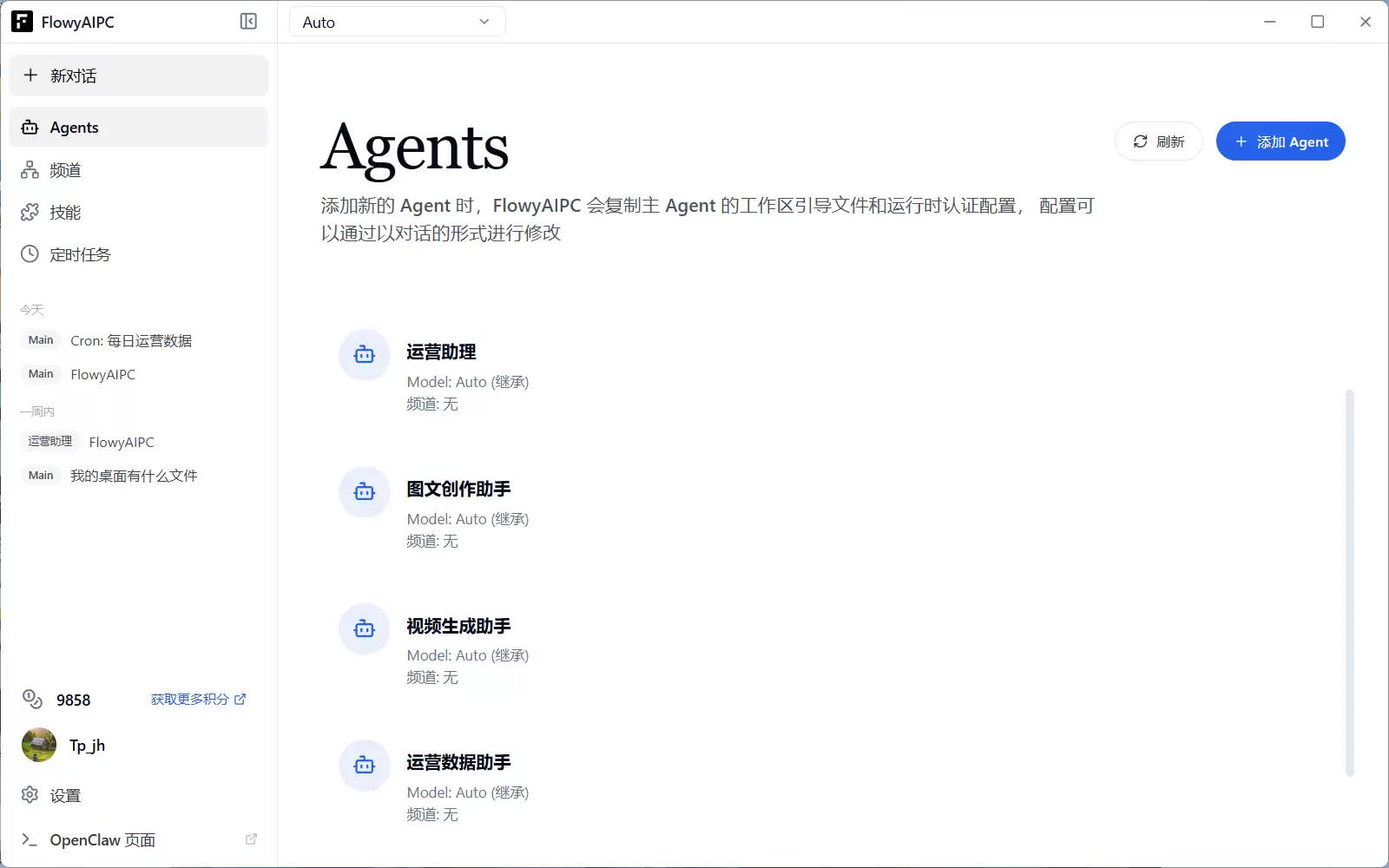 FlowyAIPC还有个精妙设计:Agents系统。你可以创建多个智能体,并赋予它们不同的专业角色。