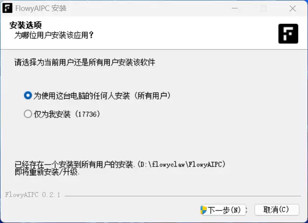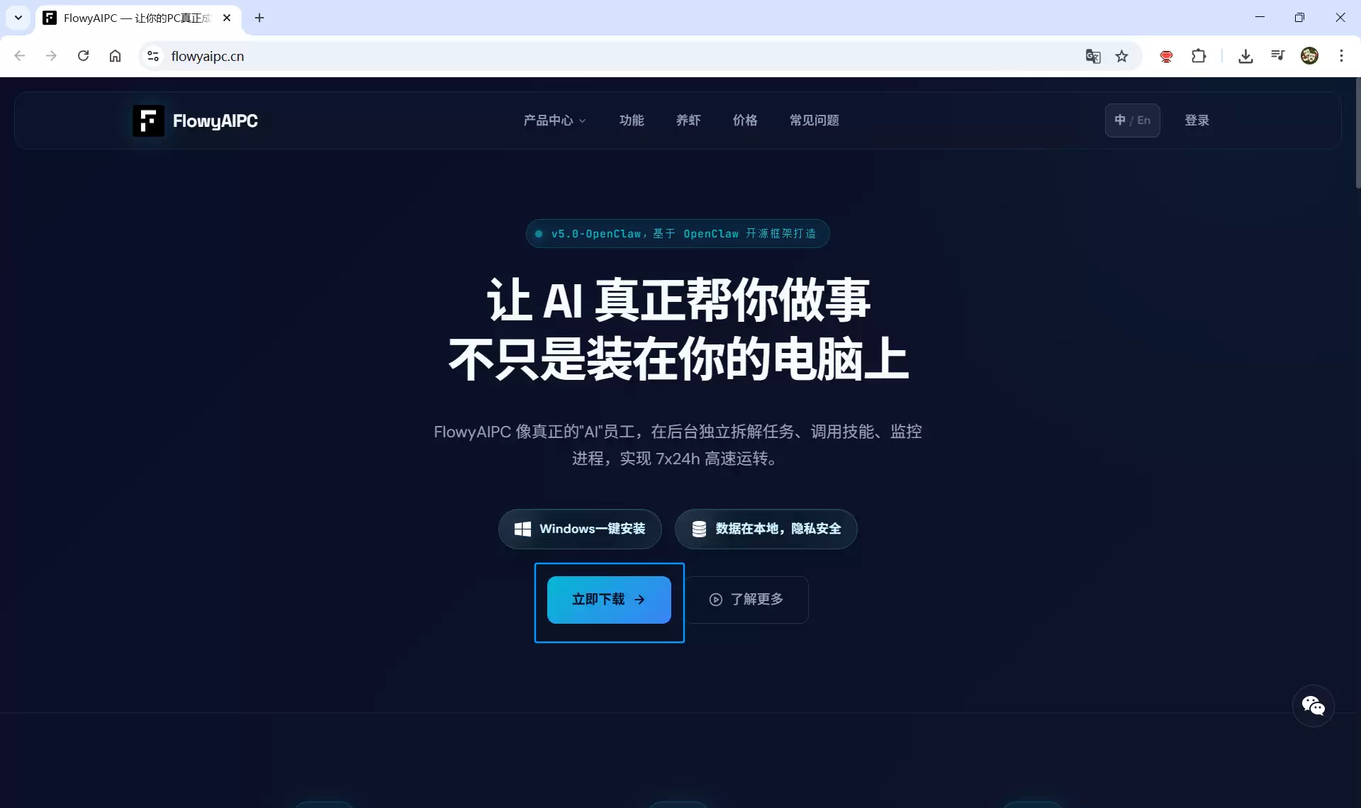 安装过程简单到不可思议:只需访问官网flowyaipc.cn,下载FlowyAIPC v5.0 - OpenClaw安装包,双击运行即可完成部署。