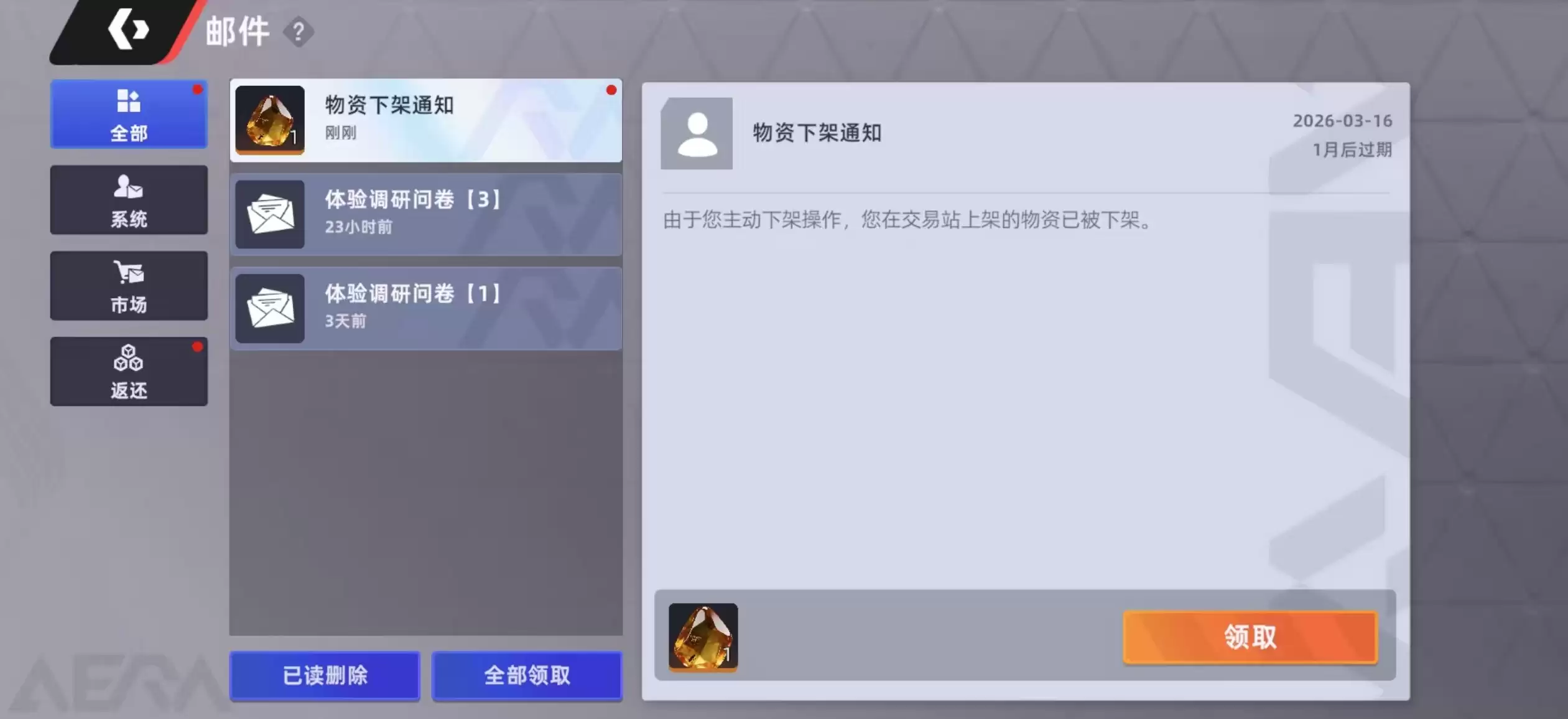 另外,不是所有道具都能进入交易站。磨损过度的武器和低价值物品就无法上架。如果上架后改变主意,也可以随时退还商品——退还的物品同样会通过邮件返还,记得及时查收。