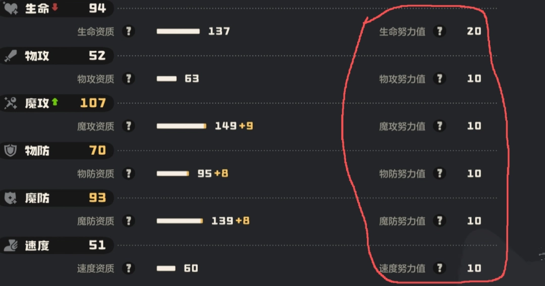 理解一只精灵的潜力,得先从它的“出厂设定”看起,这就是种族值。简单来说,它是同种精灵共有的固定数值框架。每只精灵的六大基础属性——生命、物攻、魔攻、物防、魔防、速度——其能力天花板,在它出生时就由种族值大致框定了。