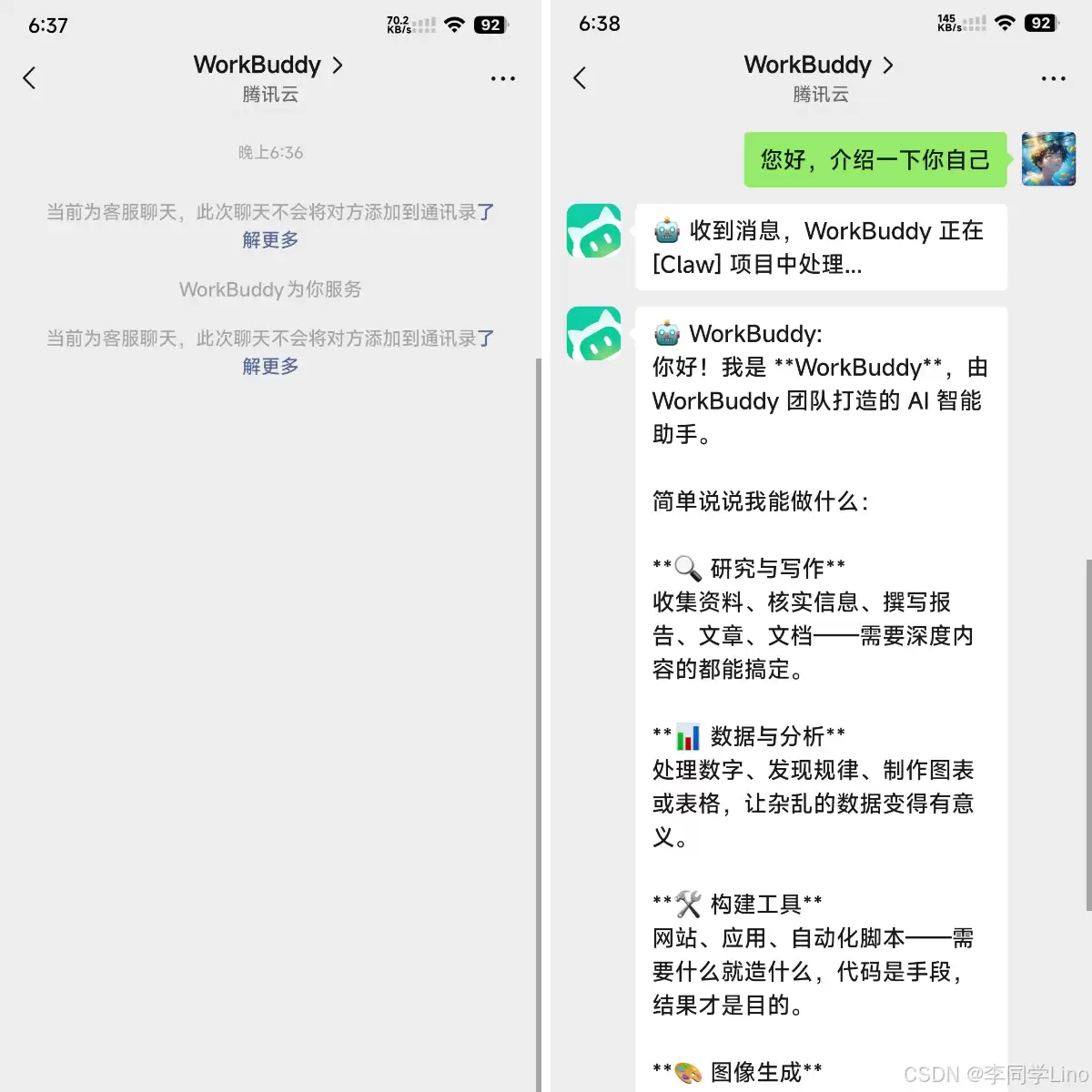 因此,你的电脑需要保持开机和联网状态,同时 WorkBuddy 软件要在后台持续运行。只要满足这个条件,即使你合上笔记本电脑(需设置不休眠)外出办公,也能随时通过微信给 Openclaw 分派任务。如果某次发送消息后没有收到回复,回家检查一下电脑是否断网或进入休眠状态即可。