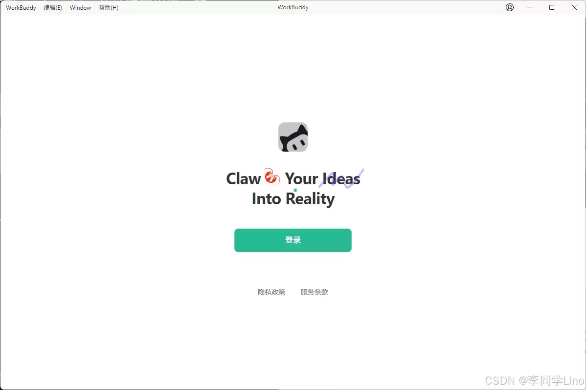 安装完成后启动 WorkBuddy,点击界面上的「登录」按钮。