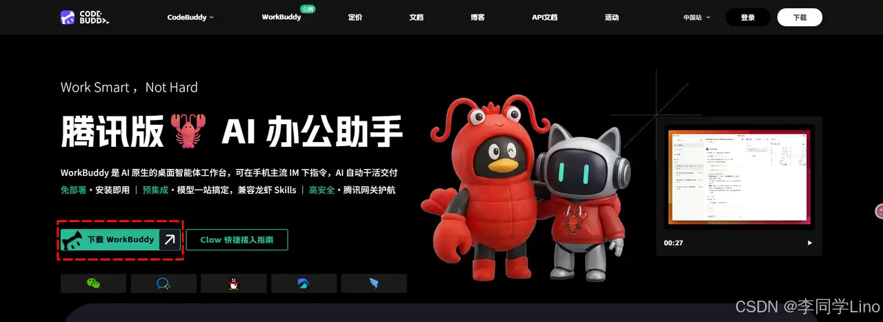 首先需要在电脑上安装一个基础工具——WorkBuddy。这是腾讯官方推出的效率工具,安全性有保障,可以放心使用。