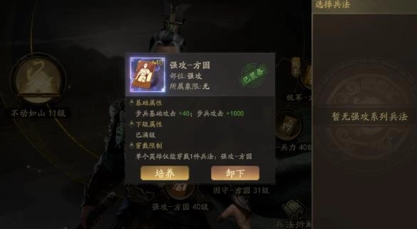 技能选择方面:神机、夺志、剑雨、神威这四个是必学的核心。选学技能可以从激励、枪神、诱魄、挪战里挑。优先级上,神机大于夺志。属性培养优先堆统帅和智力。有些攻略会建议撑武力,目的是拼夺志、剑雨这些技能的点数,但实战检验下来,那点拼点伤害远不如稳定触发“伴随伤害”来得重要,后者才是秒人的决定性因素。