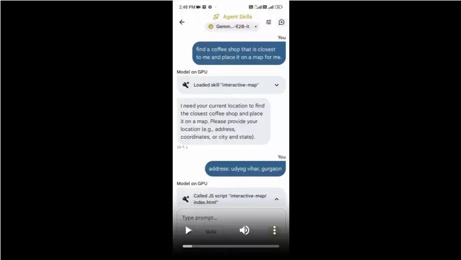 评测分析:测试不同技能时,结果有所差异。对于第一个查找咖啡店的请求,地图技能通常能给出位置正确的结果,但它需要我明确询问“离我最近的”,而不是主动检测我的位置,这算是一个不足。对于第二个发送邮件的请求,它正确加载了“发送电子邮件”技能,并显示邮件已发送,但并未提供邮件发往了哪个地址的确认信息,这是一个明显的缺陷。总体而言,响应时间和偶尔的任务失败表明,在移动设备上使用这类智能体AI,仍有相当大的改进空间。