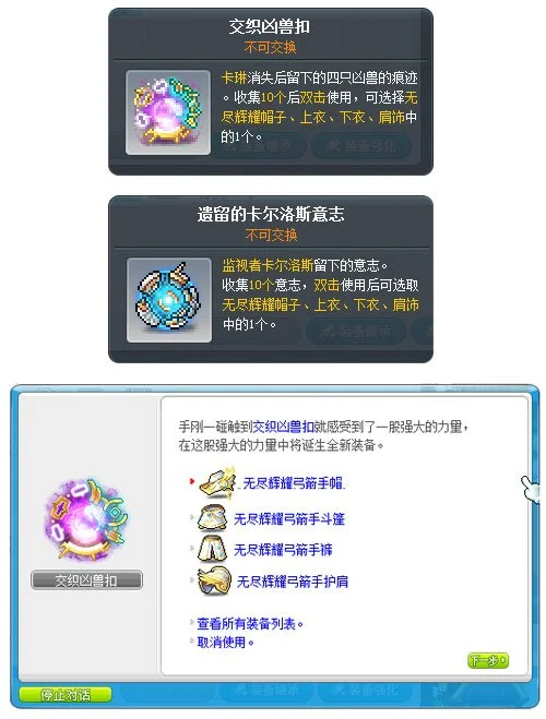 从V224版本开始,有几个细节值得老玩家们特别注意:部分道具中可获取的“无尽辉耀”装备,其掉落部位已经调整为帽子、上衣、下装和肩饰。换句话说,配装思路可能得跟着变一变了。