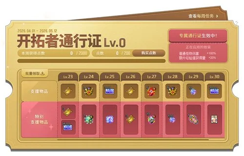 从4月1日到5月12日,“开拓者通行证”活动限时开启。玩法不复杂:通过日常冒险提升通行证等级,就能按部就班地领取各种奖励。这些奖励的设计,明显是为了助力玩家达成阶段性的成长目标。