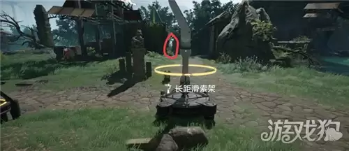 第四步,记得图中划圈的位置吗?那里原本有一个装备模板箱(如果已经拿过就无视)。在这个箱子附近,找一个没有障碍物阻挡的地方,布置第四个滑索点。
