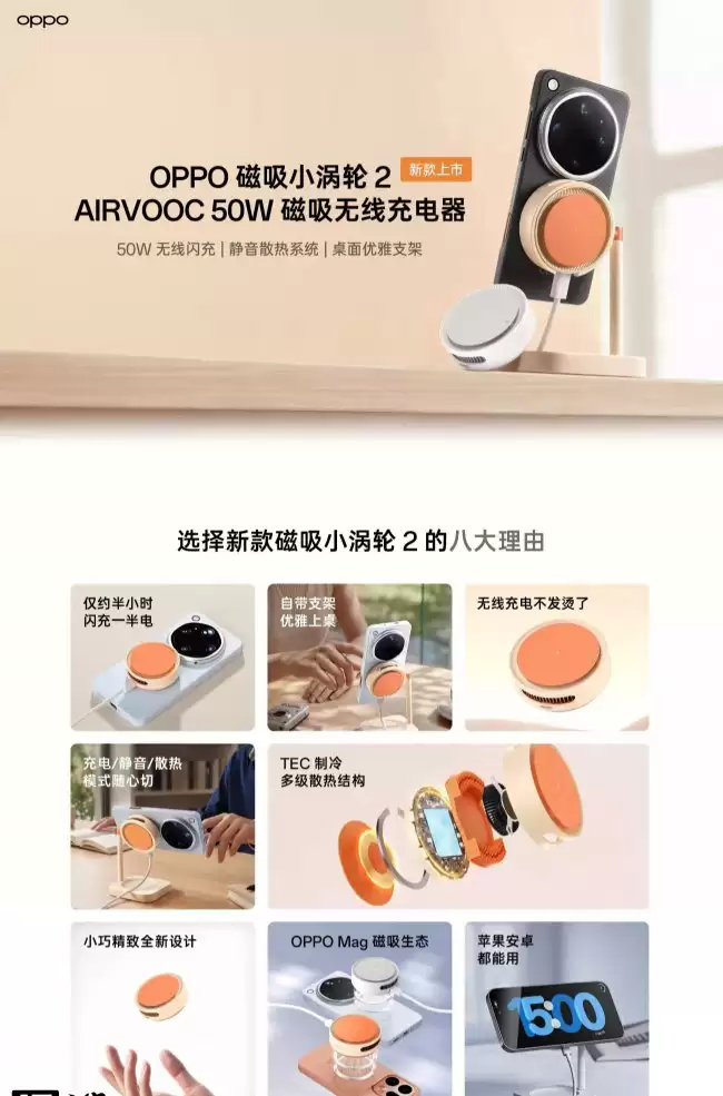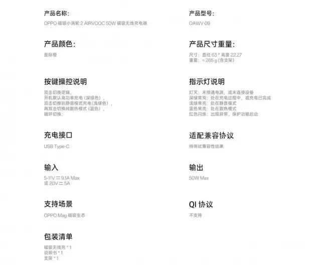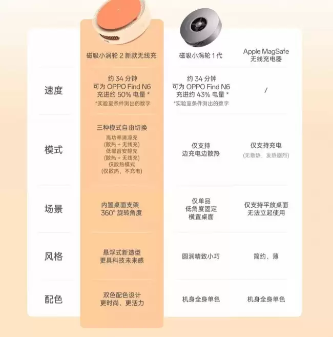 OPPO磁吸小涡轮2无线充电器推出“星迹橙”新色 OPPO磁吸小涡轮2无线充电器产品线迎来更新