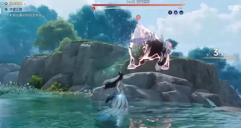 接下来,在石头那个位置,普攻一下BOSS,把仇恨拉稳。等它朝你走过来之后,再从容地往中间区域移动。