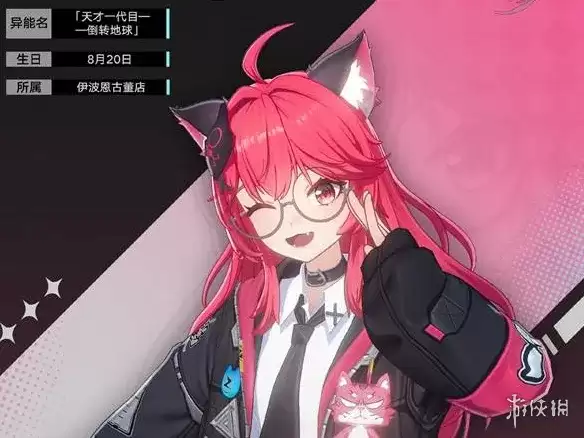 萌点:红发虎耳(强调是虎不是猫)、圆框眼镜、反重力行走、零食党(脆青花鱼、酱小羊排)