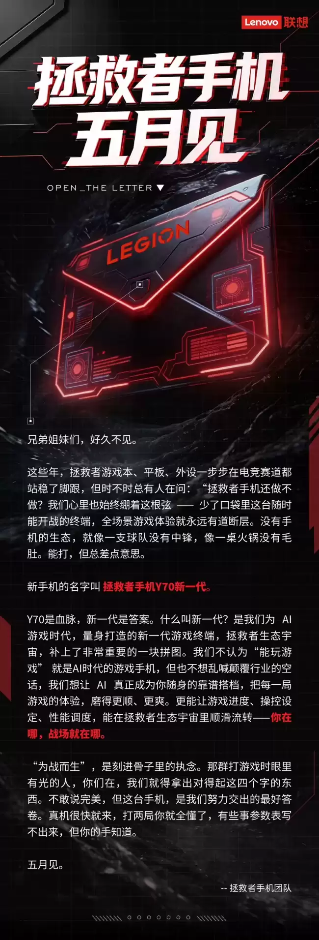联想拯救者Y70新品定档5月19日发布 官方预热正式启动,联想拯救者Y70新一代游戏手机确认