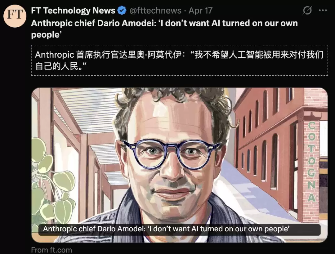 在这场权力的游戏中,Amodei是一个矛盾的结合体。他怀有技术极客的道德洁癖:拒绝五角大楼将AI用于美国国内的大规模监控,为此不惜被美国总统辱骂为「激进的左翼疯子」。
