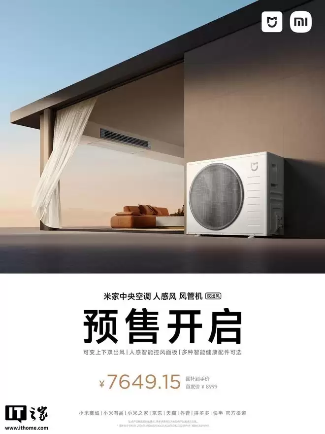 米家中央空调人感风风管机双出风版上市:十年包修承诺,定义智能舒适新风向 4月20日,