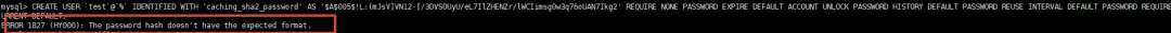 ERROR 1827 (HY000): The password hash doesn't ha ve the expected format.