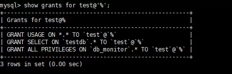 然后,为真正需要的‘test’@‘%’用户重新授予完整的权限。