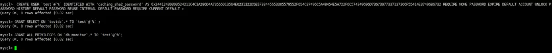 最后,结合上面两步获取的信息,执行创建用户并授权的语句。注意把主机部分替换成新的(比如‘%’或另一个具体IP)。