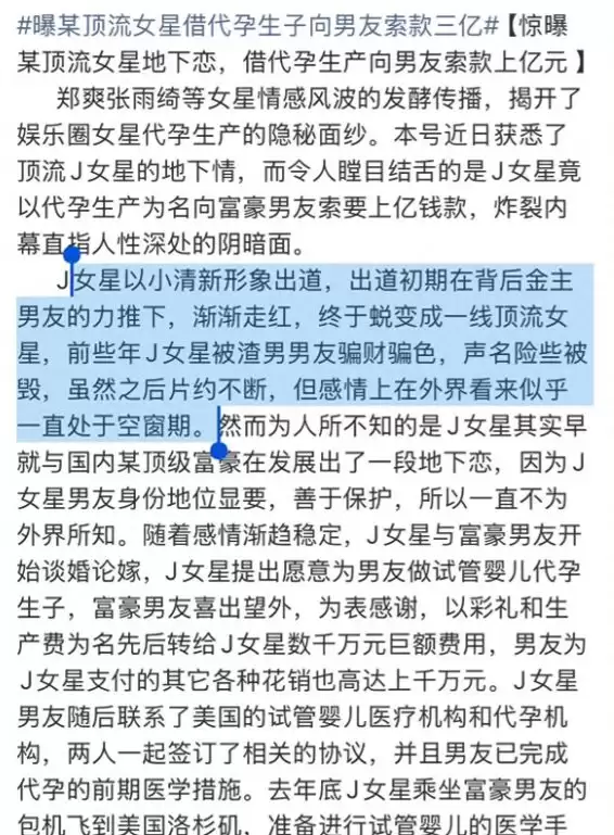 故事的精彩处在于后续发展。爆料称,尽管对外一直维持单身状态,但她早已与一位富豪男友展开地下恋情。双方感情稳定后,女星主动提出了赴美代孕生子的计划,富豪男友欣然同意,并迅速转账巨额费用以表支持。两人随后一同飞往洛杉矶,完成了相关的医学准备。
