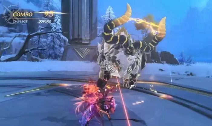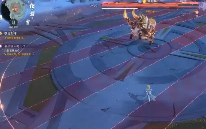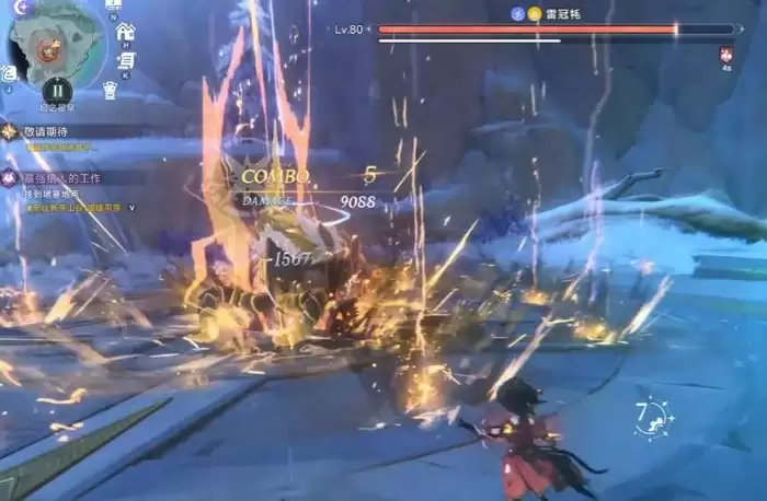 战斗伊始,雷冠牦的移动会相对缓慢。但很快,它便会迅速转向玩家开始蓄力——此时身上会闪烁红光,并在地面展开一个超大范围的红色预警圈。这里有个精妙的时机点:当红圈收索至最小、同时出现十字红闪的刹那,进行闪避或完美反击(康特),可以成功规避。成功后,BOSS会陷入一个较长的硬直转身期,这正是全力输出的黄金窗口。在它转头后,可以衔接主力输出角色的大招,例如红宝石的爆发技能,将伤害打满。