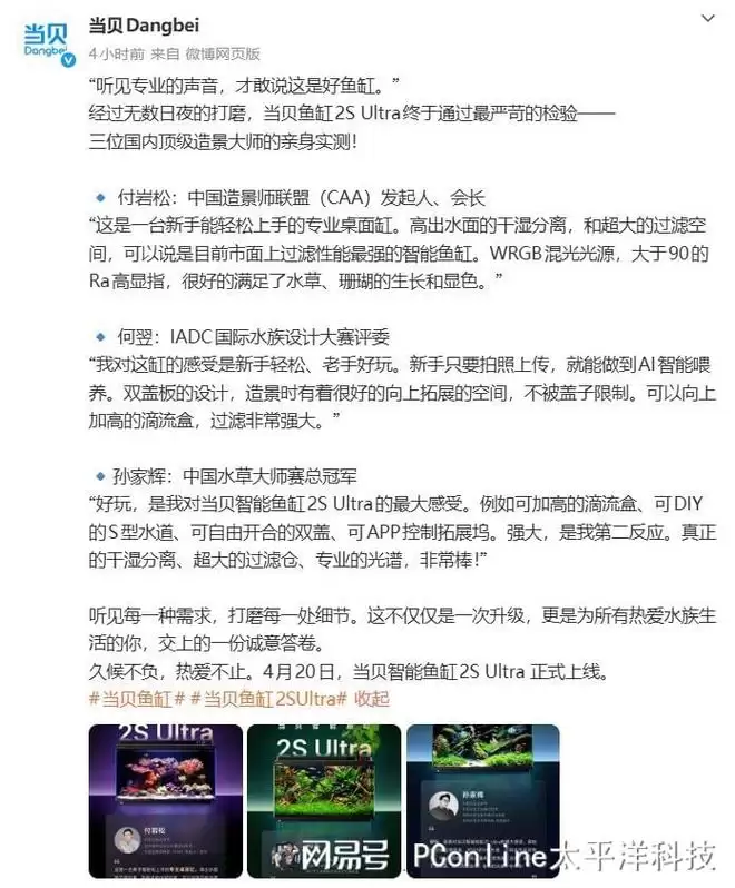 三位顶尖造景师的实测反馈,已经为这款产品勾勒出足够清晰的技术画像。4月20日,所有细节将全面公开。而产品的最终评价权,始终属于每一位亲身使用、并与之共同构建水下生态的用户。