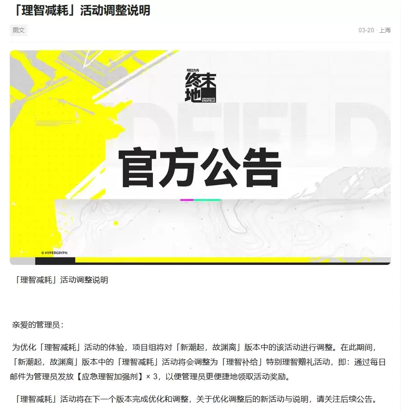 活动期间,玩家通过完成每日登录和消耗理智的任务,即可稳定获取“应急理智加强剂”和“理智消耗许可”。具体来说,每日最多可获得4瓶加强剂和8张许可。这一改动,将资源获取的主动权更大程度地交还给了玩家,让大家能够更自由地分配游戏时间,实现真正的“减负”与“优化”。