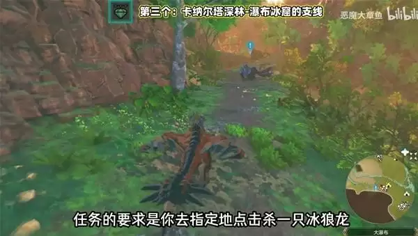 第三个珠子需要你多花些工夫。首先,完成一个指定的前置任务。之后,你需要去挑战并击败一只冰狼龙(如下图所示),胜利后便能获得这颗关键的珠子。