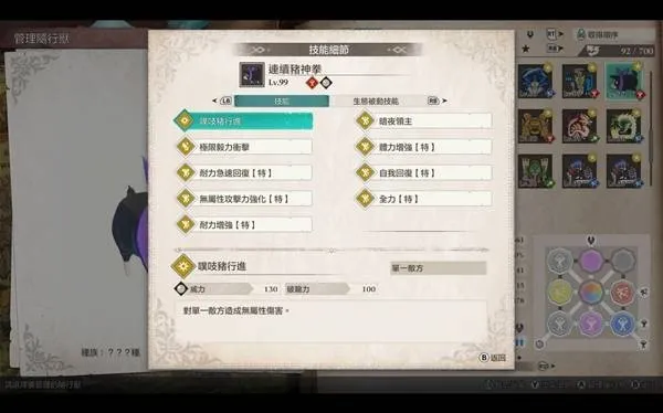 连续攻击类因子:例如「连续攻击·大」,这是整个流派的灵魂。它的效果很直观:随从兽使用特定攻击技能后,有概率触发追加攻击。多一次攻击,就多一段伤害累积,输出频率直接上了一个台阶。想象一下,一个强力技能打出去,特效触发紧接着又补一下,瞬间的伤害爆发力非常可观。