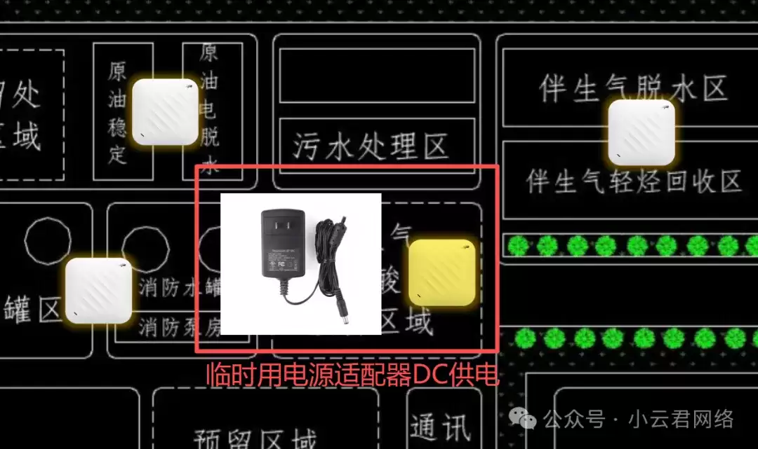 AP硬件无虞,下一步排查供电链路。PoE供电对线缆规格及端接工艺敏感,供电不足可能导致射频模块工作异常。现场使用独立DC电源适配器为AP直接供电。