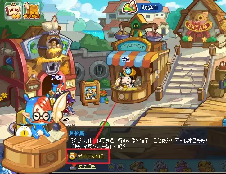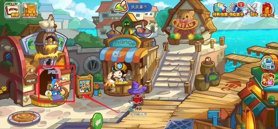 在地图上找到“跳跳集市”这个区域,然后传送过去。到了那里,场景就完全不一样了。