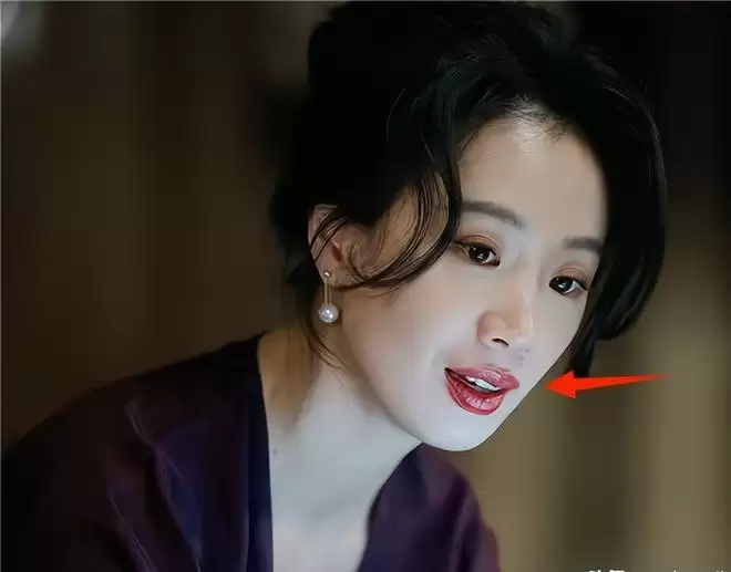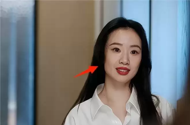 近景镜头下,因为演员嘴唇偏薄,化妆师将口红涂出了唇线一圈,视觉效果有些突兀。