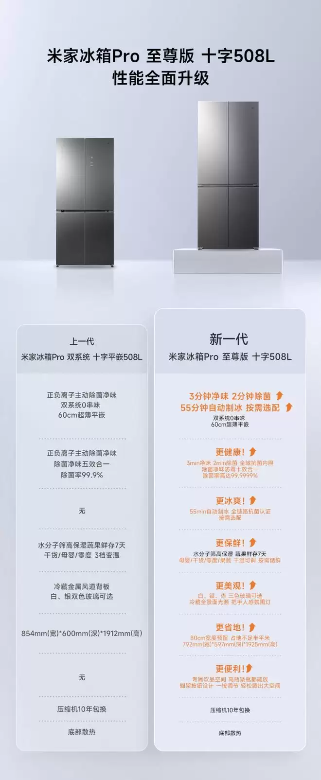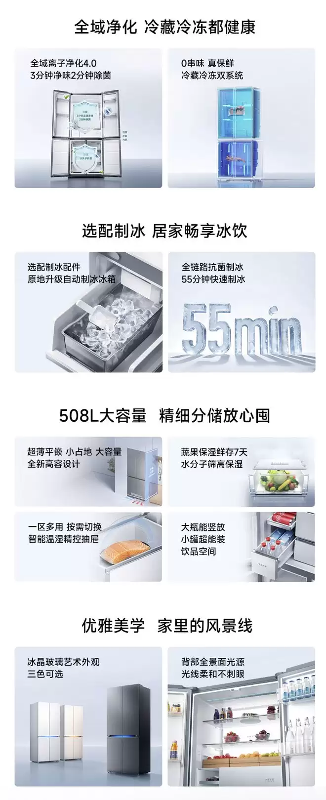米家冰箱 Pro 至尊版 508L 发布:全域离子净化 4 0 与冰晶玻璃艺术外观 米家冰箱产品线迎来