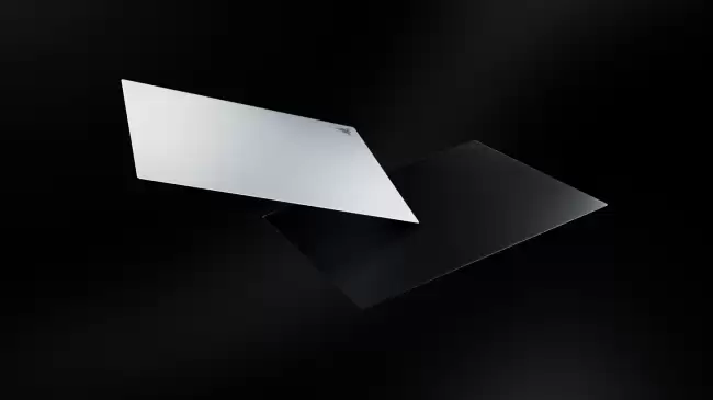 具体来看规格,这款鼠标垫的长宽是标准的500mm × 400mm。设计上用了全覆盖的防滑橡胶底座,边角也经过了CNC精铣处理,显得比较精致。表面是它的重头戏:低摩擦的玻璃材质,外面还覆了一层耐脏的保护涂层。官方数据显示其莫氏硬度达到了9H,并且表面经过了2μm级别的微纹理蚀刻。这种处理不是为了好看,主要是为了更精准地配合现代鼠标光学传感器的工作,提升追踪性能。