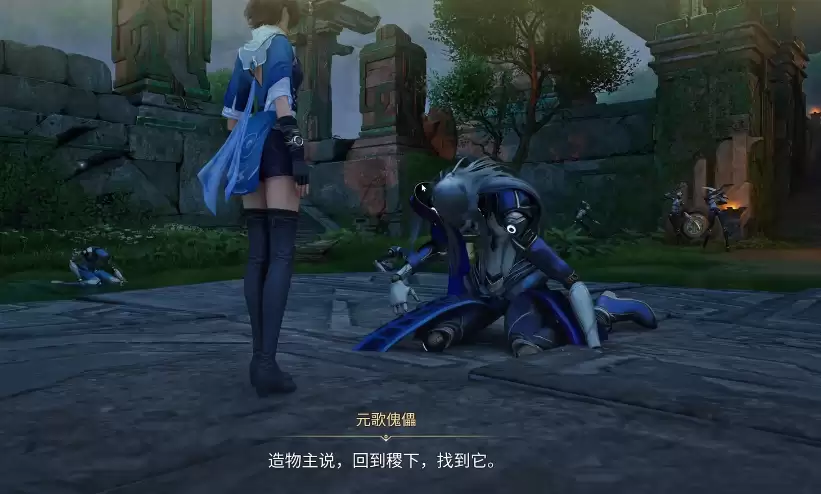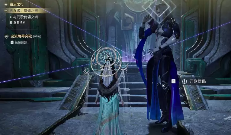 一路跟随指引前进,你会来到一扇紧闭的大门前。操控左侧的机关打开大门,就能收集到关键的“傀儡核心”。拿到核心后,记得返回初始位置,将其装配到一具傀儡身上。紧接着,一场短暂的傀儡戏就会上演。表演落幕,元歌的傀儡会再次现身,为你标记出下一个探索地点。
