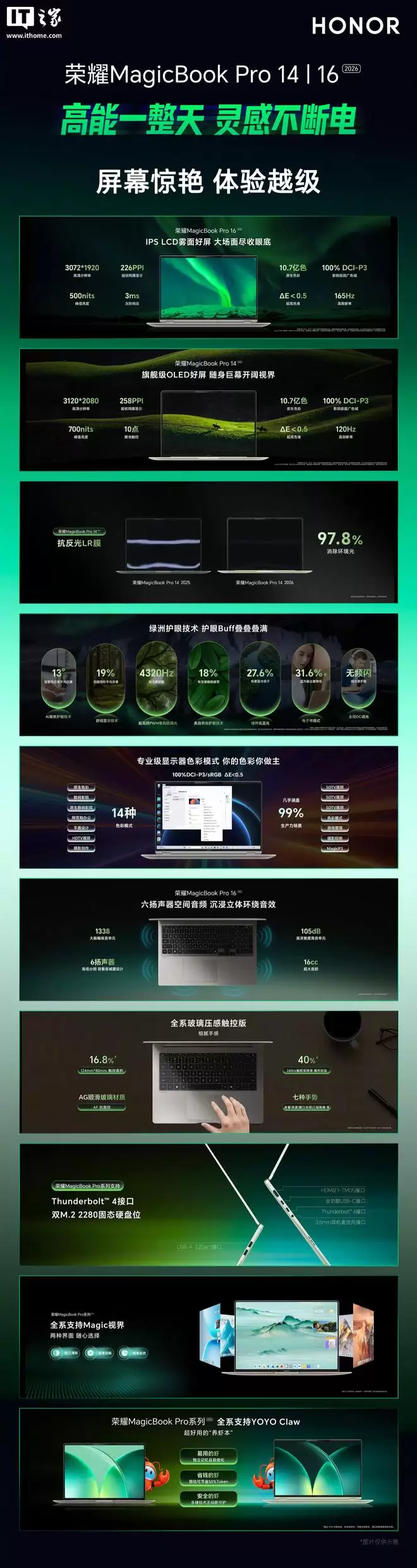 在今天的荣耀WIN游戏本暨全场景新品发布会上,备受期待的MagicBook Pro 14 | 16 2026旗舰轻薄本正式亮相。新机不仅搭载了全新的Magic视界AI交互界面,还全系支持YOYO Claw智能功能,在叠加国家补贴后,起售价来到了6799.15元,性价比相当突出。