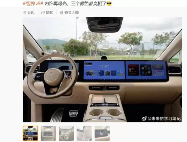 博主 @未来的学习笔记 昨日分享了鸿蒙智行首款旗舰 MPV —— 智界 V9 的内饰细节 从曝光的