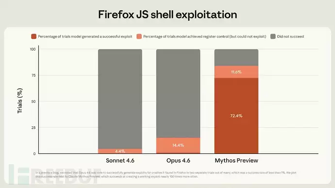 相较于Opus 4.6等前代模型,Claude Mythos预览版完成了从漏洞识别到利用生成的关键升级。以往模型或许能定位安全缺陷,但生成稳定有效的攻击载荷往往存在差距。新版模型在开源软件内部测试中,成功对10个完全修补的目标实现了完整的控制流劫持。这一突破的核心驱动力,源于模型在逻辑推理链构建与自主编码执行能力上的系统性提升。