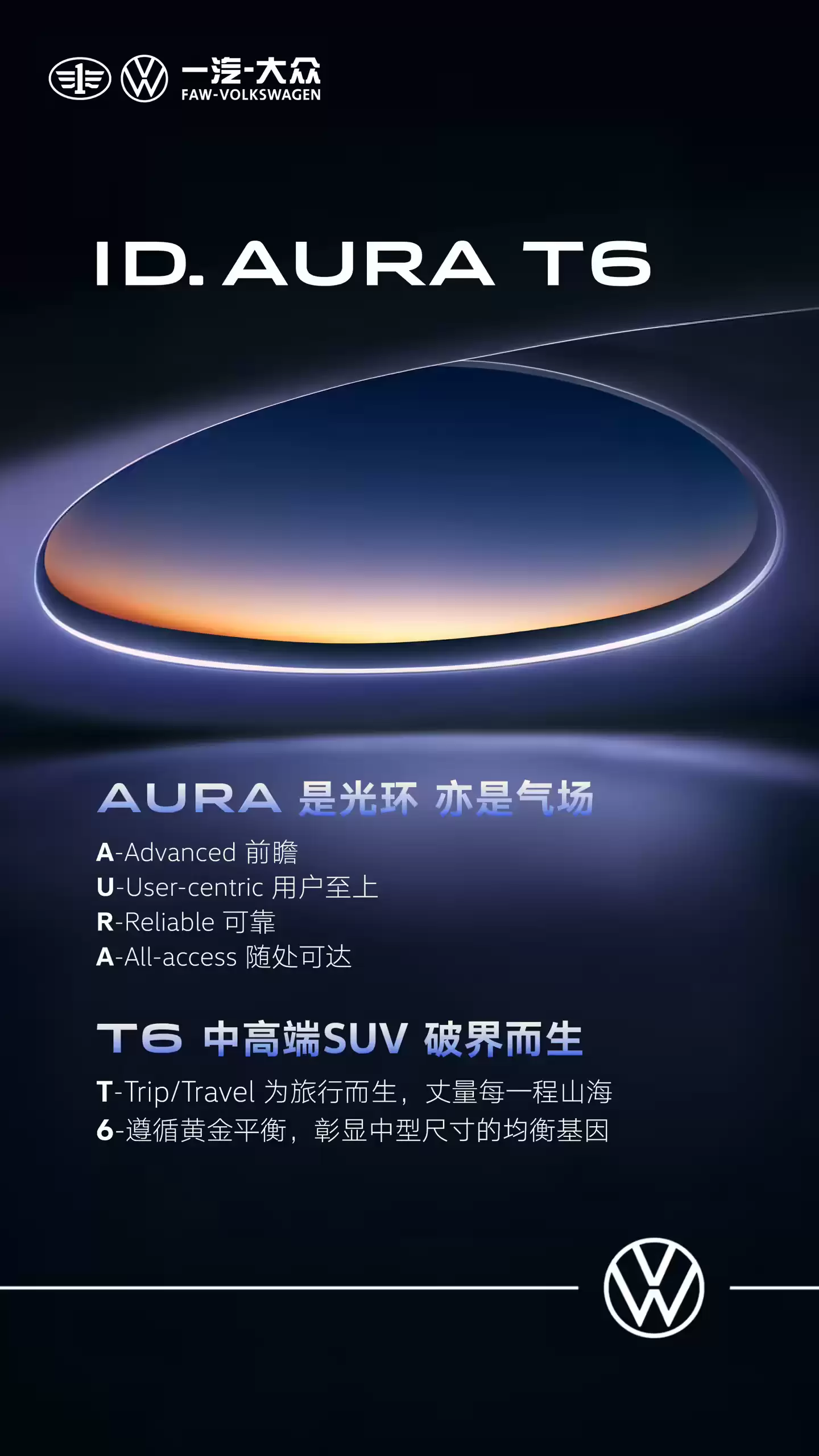 一汽-大众全新新能源序列ID AURA发布,首款车型T6定档北京车展 汽车市场又有新动向。在4