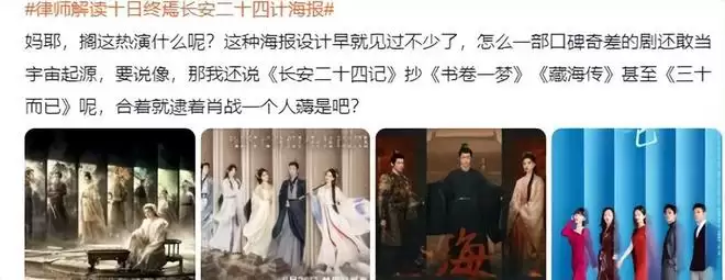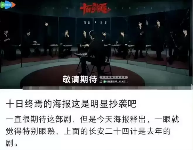 然而,首波阵容海报的发布,却意外地将《十日终焉》推向了另一场讨论。热搜话题“十日终焉长安二十四计海报”直指其海报设计与另一作品《长安二十四计》高度相似。