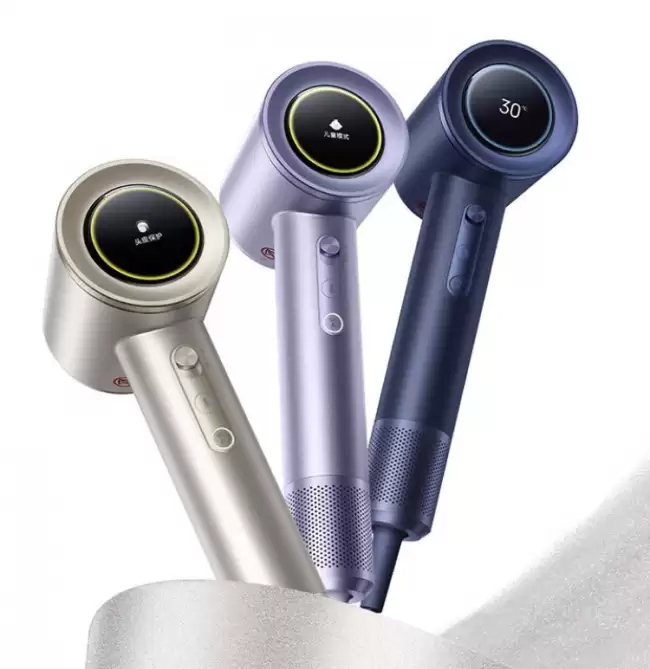 外观设计上,新品提供薄暮金、雾凇紫及鸢尾蓝三种金属珠光漆配色,质感出众。机身正面集成了一块彩色显示屏,握柄处的铝合金调温旋钮进一步强化了产品的整体精致度与操控手感。