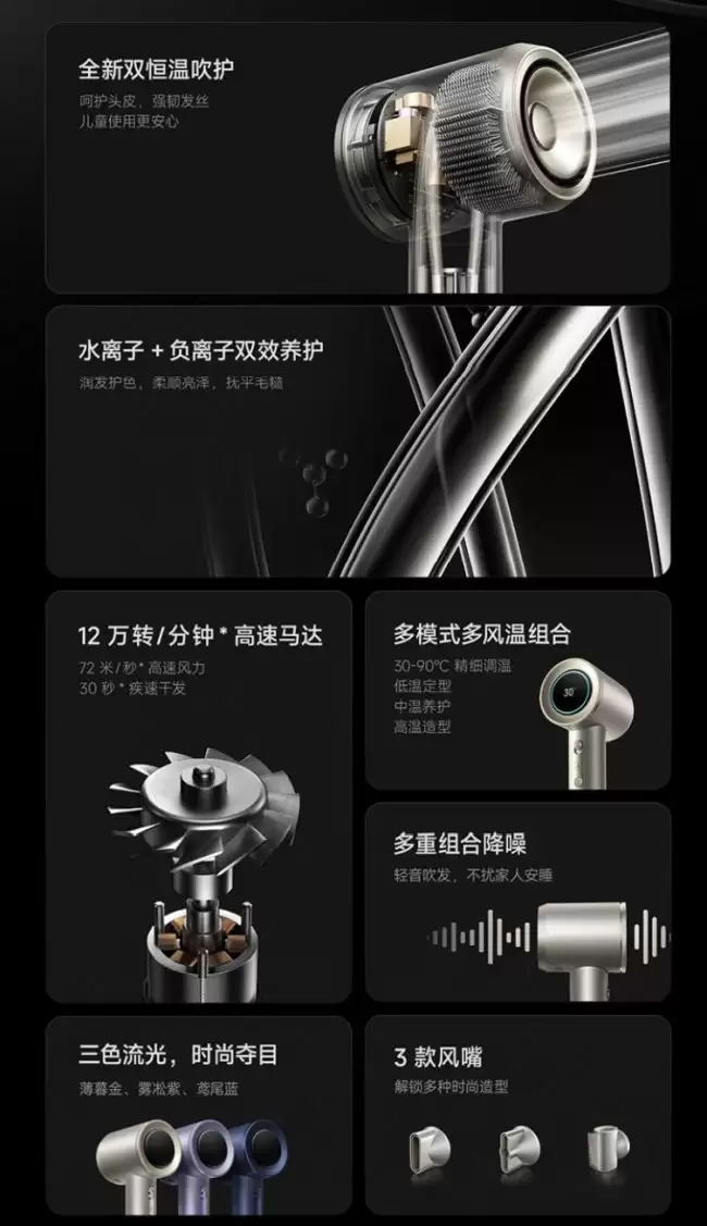小米米家高速水离子吹风机 Pro 开启预售:12万转马达与智能温控 小米米家高速水离子吹风