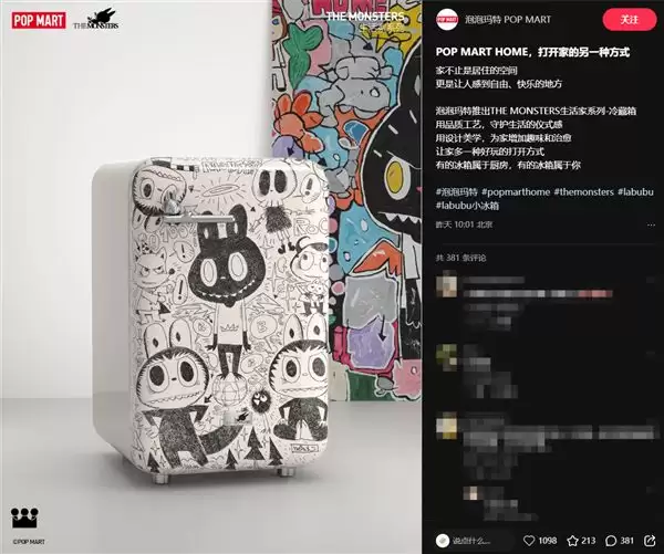 泡泡玛特首款IP联名冷藏箱发布,正式进军小家电赛道 潮流玩具品牌泡泡玛特正式拓展其商