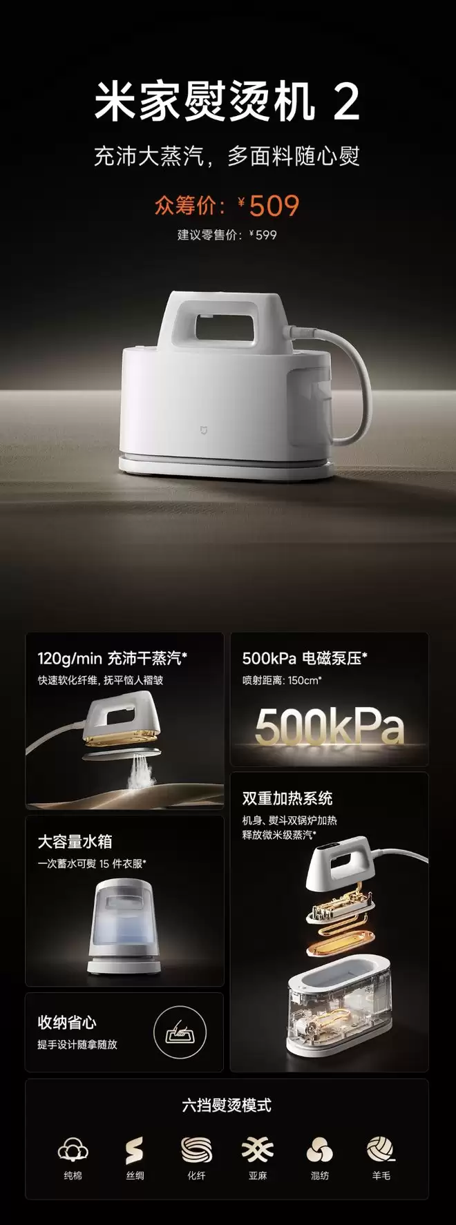 小米有品现已推出全新米家熨烫机2。该产品将于4月6日开启众筹,官方定价599元,众筹期间用户可享509元的首发优惠价。