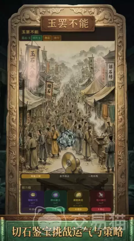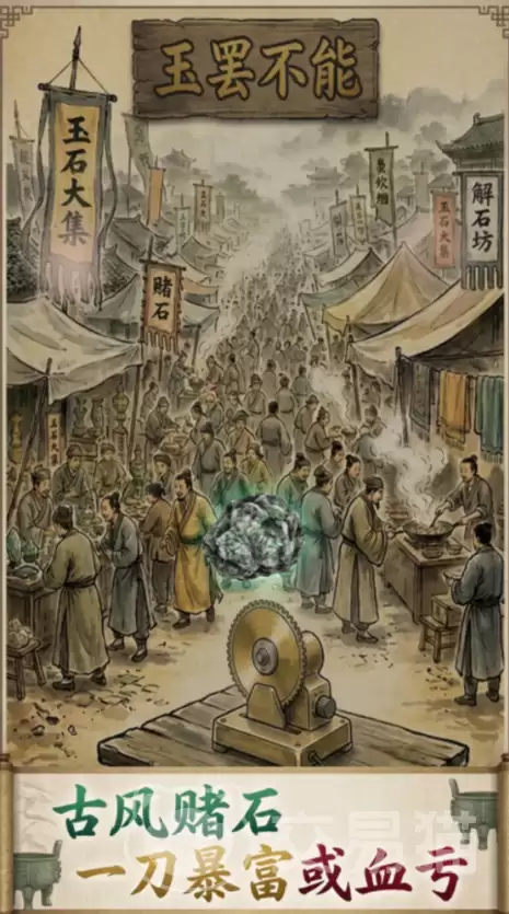 赌石,这个在影视作品中充满传奇色彩的行业,总带着几分神秘——一块其貌不扬的粗粝原石,一刀下去,可能是价值连城的温润美玉,也可能只是一文不值的顽石。这种集悬念、策略与博弈于一身的独特体验,如今被巧妙地搬进了手机屏幕。古风题材手游《玉罢不能》,正是以传统玉石交易为舞台,打造了一套沉浸感十足的赌石经营玩法。在这里,你将扮演一位玉石坊主,在竖屏方寸之间,亲手操控刀锋,逐层剥离石皮,判断内里乾坤。每一次落刀,都直接牵动着你的收益与成败,紧张感十足。