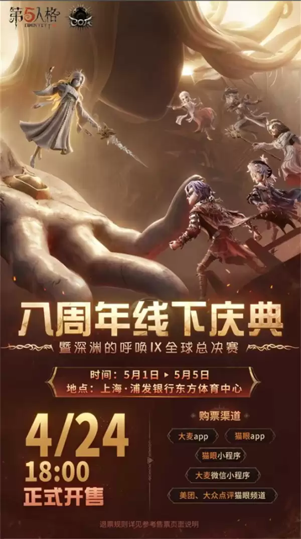 《第五人格》八周年线下庆典暨COA9全球总决赛第二轮售票开启 各位玩家注意了,《第五人