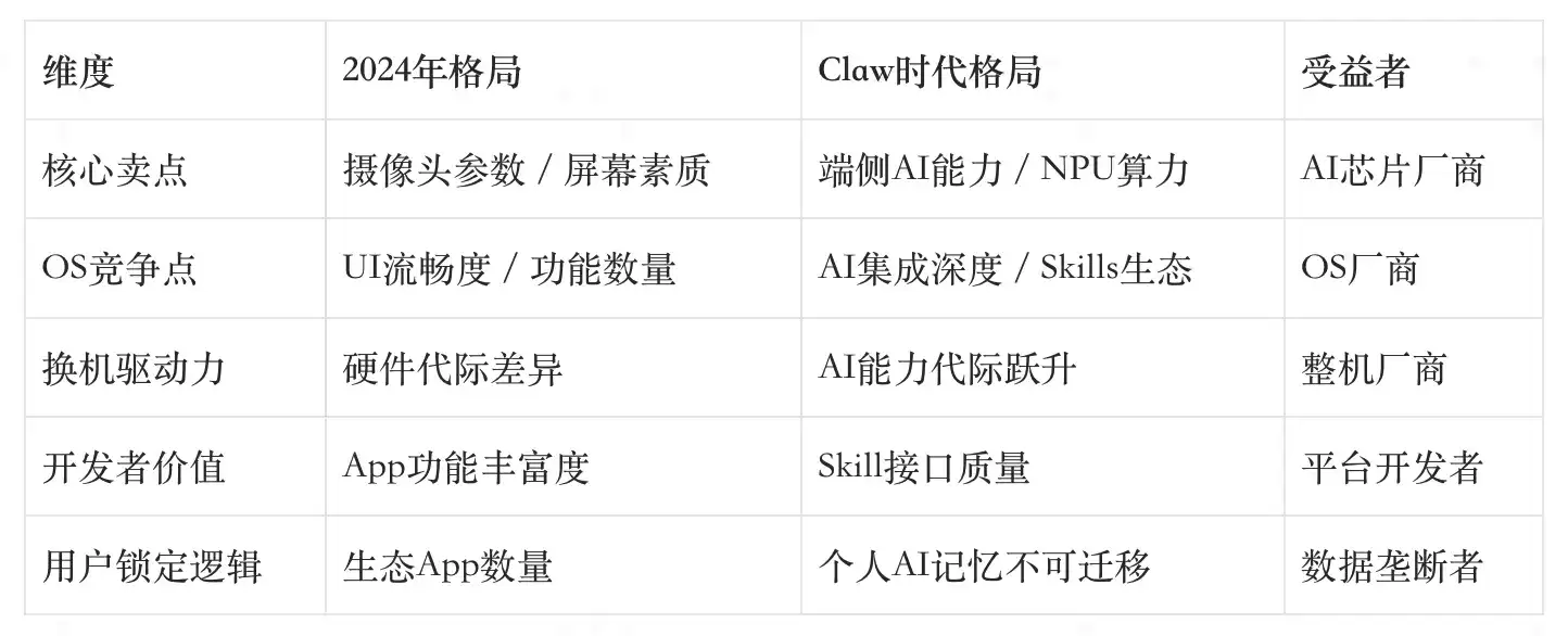 ⚠️ 危机预判:传统手机厂商中,那些缺乏自研芯片能力、AI软件积累薄弱、仅依赖硬件堆料的玩家,将在未来3-5年内面临严峻的市场淘汰压力。手机行业很可能迎来一次由“AI鸿沟”导致的市场集中——强者恒强,弱者出局。