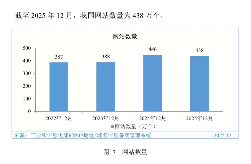 数据或许更能说明趋势。CNNIC数据显示,截至2025年12月,我国网站数量为438万个。这个数字的巅峰在2017年,达到533万个,此后便逐年下降。在智能手机主导的当下,传统网站本身,似乎也正在成为一种“老古董”。