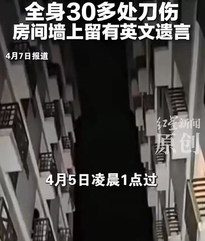 泰国一所高校附近近日发生一起离奇双尸命案,一名中国留学生不幸身亡。4月5日凌晨,30岁的中国留学生丹某(音译)从9层公寓坠落。数小时后,警方在其房间浴室发现另一名21岁女大学生遗体,身中多刀,现场有明显搏斗痕迹。更令人费解的是,房间墙上留有英文遗书。目前,笔迹鉴定专家已介入分析,警方正全力调查案件动机与真相。