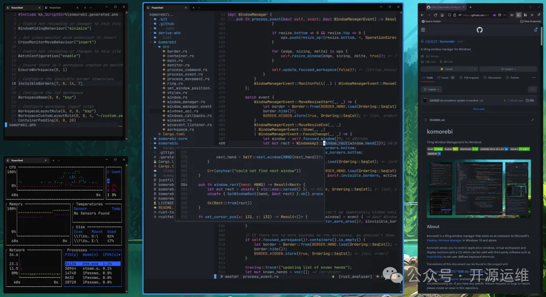 长期关注 GitHub 工具生态的用户,可能已注意到这个名为 “komorebi” 的 Windows 平铺窗口管理器项目,其可观的星标数直接印证了市场痛点:对于已习惯 Linux i3 或 macOS Rectangle 高效工作流的用户而言,Windows 原生窗口管理方式的效率瓶颈尤为明显,往往仍需依赖手动拖拽或基础的分屏功能。